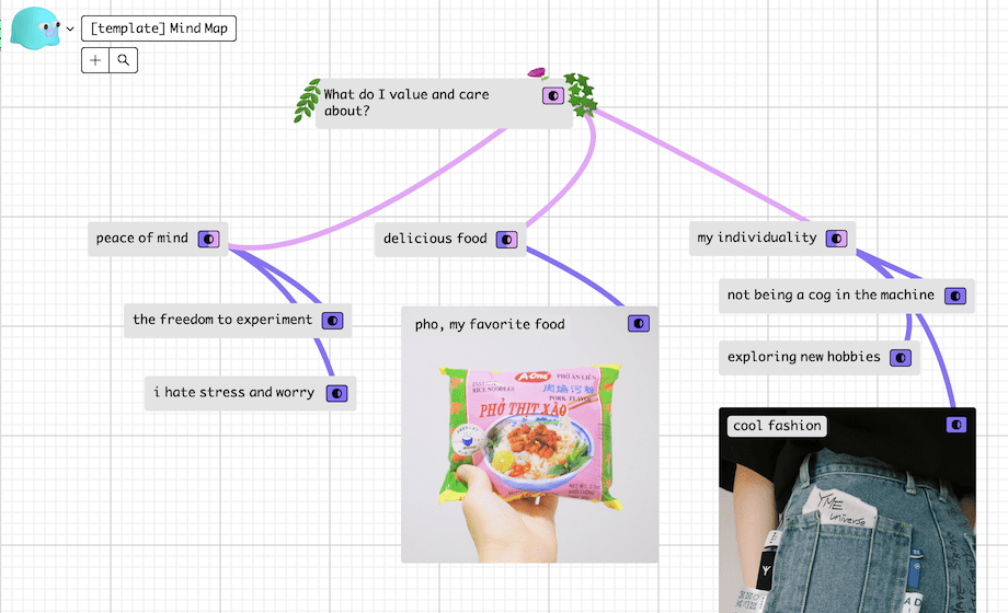 Express, organize, and make sense of your thoughts and feelings by capturing and visually connecting related ideas together.
