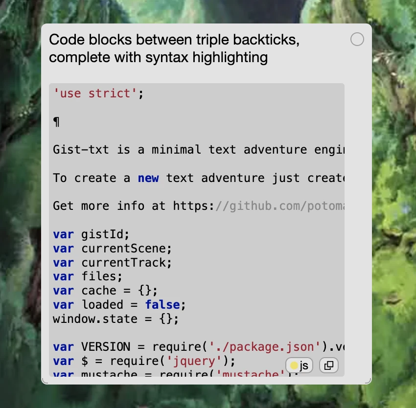 Enclose code snippets between triple backticks. You can also change the syntax highlighting for different programming languages.