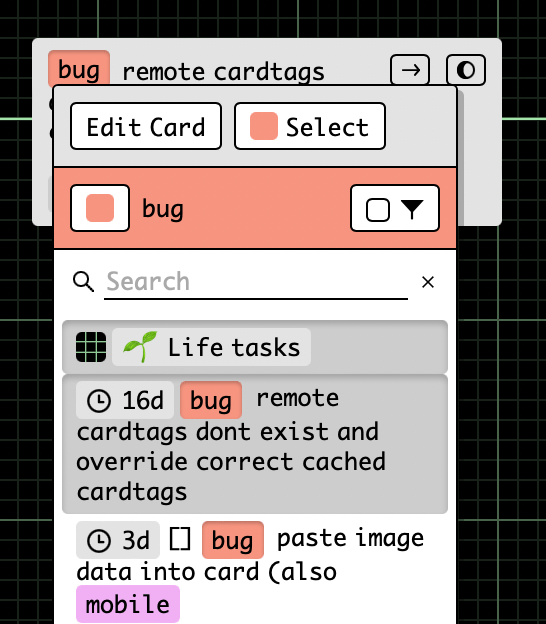 Click on a card tag to change it's color or to jump to other cards with that tag in other spaces.