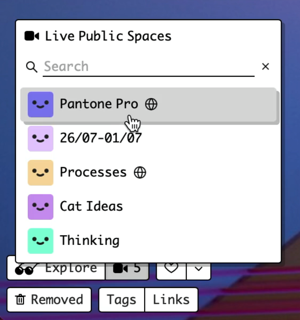 Live Spaces shows public spaces that are currently being edited. It's a fun way to discover new spaces and community creators.
